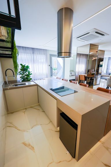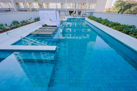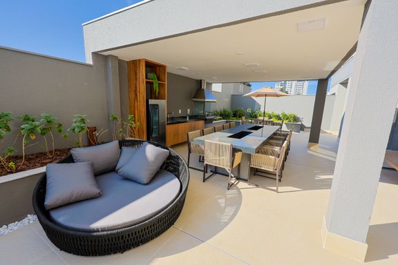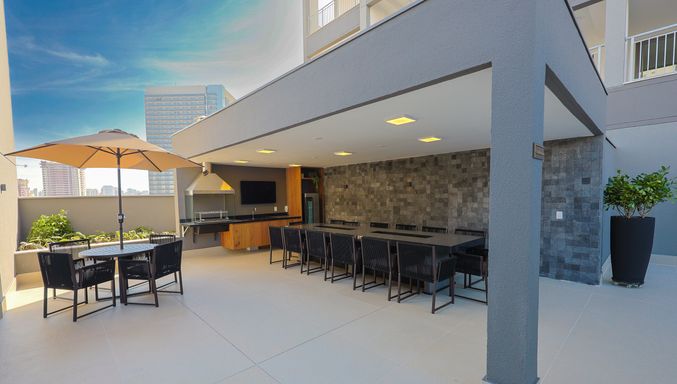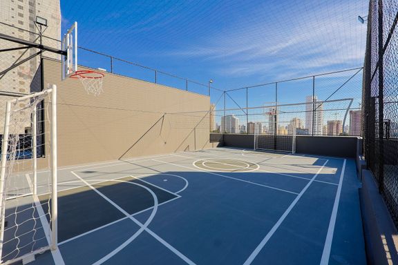 A área de lazer inclui hall social, espaço delivery, coworking, mini market, salão de festas, churrasqueiras, academia, salas de jogos adulto e teen, brinquedoteca, playground, piscinas adulto e infantil, deck molhado, solarium, spa e quadra recreativa.